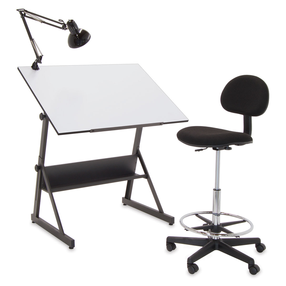 Attractive and functional, Blick Studio Center by Studio Designs features a stylish drafting table, a height-adjustable drafting chair, and a classic swing arm lamp. The adjustable drafting table is rock steady thanks to its triangular base, and its tilt angle goes from flat to an almost perfectly v...