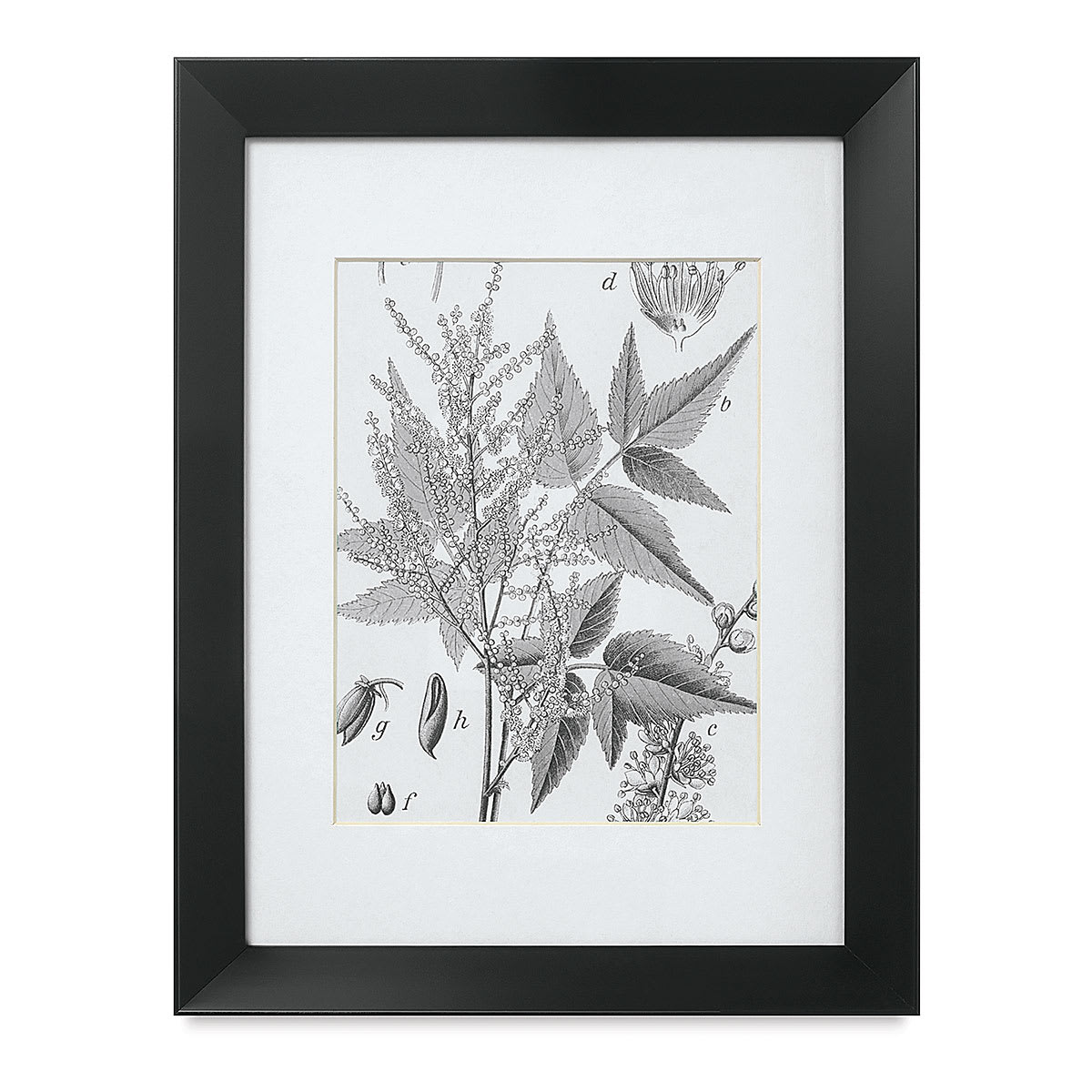 A contemporary frame with a smooth black finish and a sharply beveled 1" wide profile, the Blick Tempo frame complements your artwork or photos beautifully. Made from polystyrene, the Blick Tempo frame includes a 4-ply, white, bevel-cut mat that is pH-neutral. Also included are a styrene face, blac...