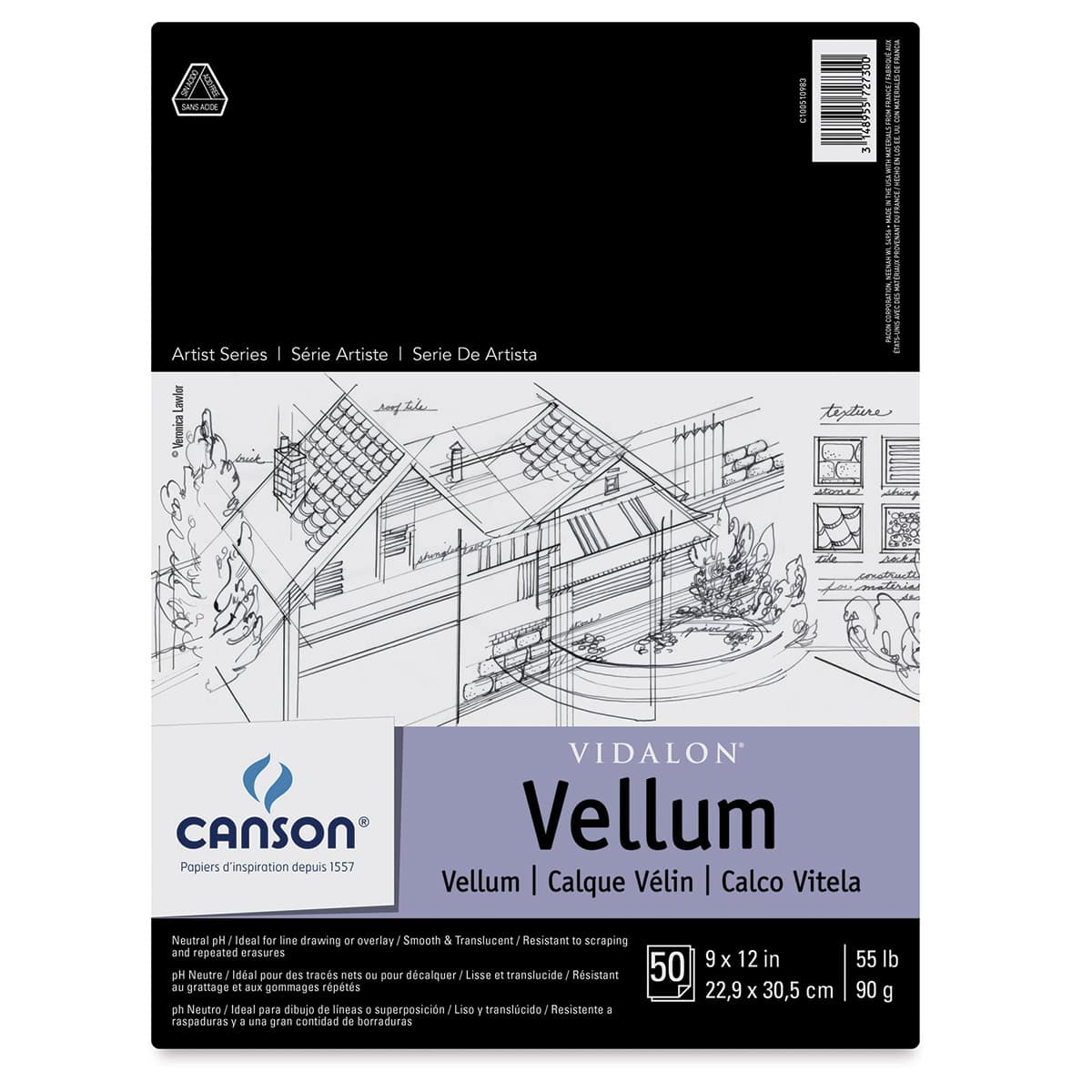 Translucent vellum paper with high transparency and extra smooth finish. Choose pads or sheet packs. Use Vidalon vellum for line drawing, pencil, ink, fiber tip, and technical pens.