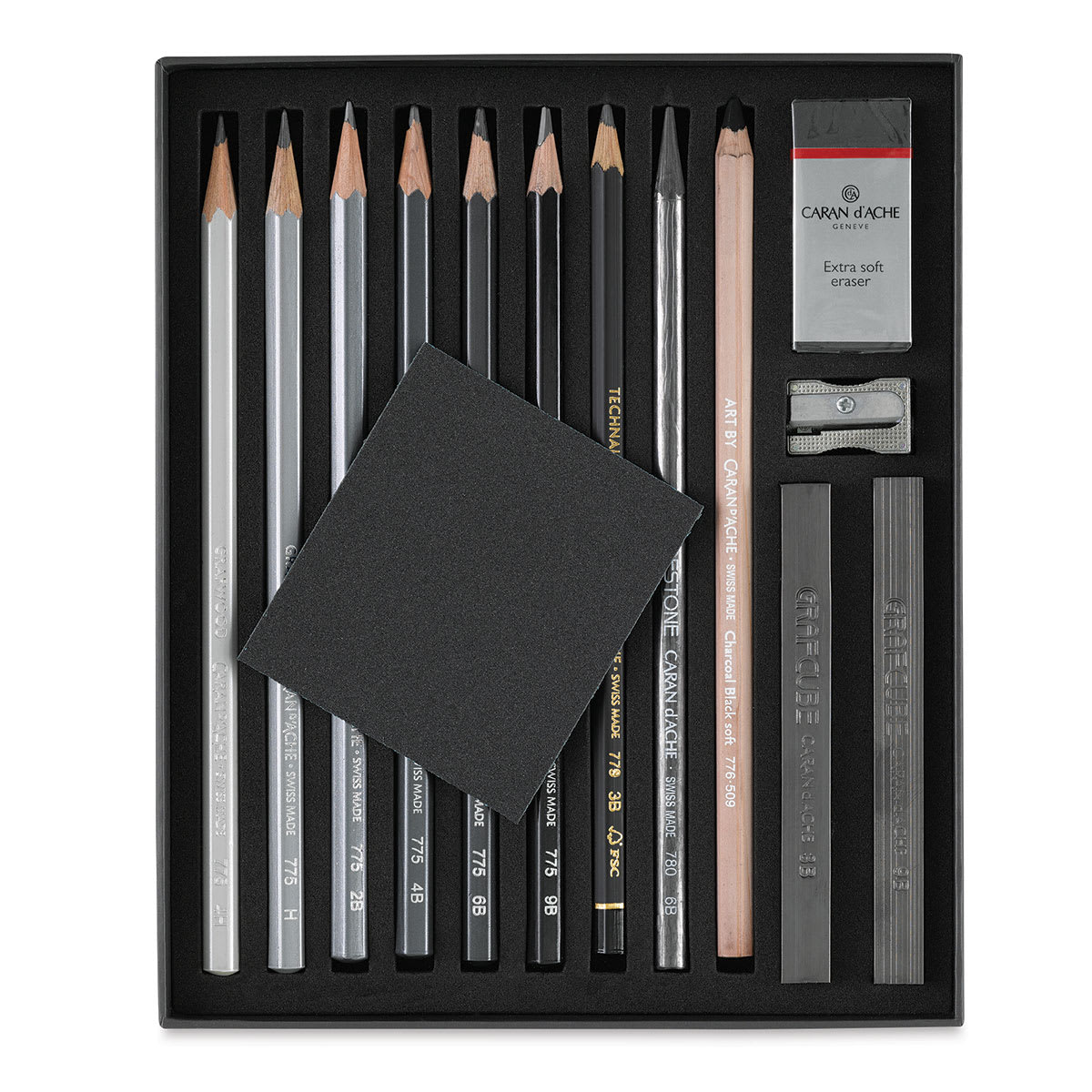 The Caran d'Ache Sketching Set is filled with top-quality artistic tools for creating sketches, drawings, and detailed illustrations. This is a great set for art students just learning the basics, as well as for more advanced artists and design professionals. This 14-piece set includes: 6 Grafwoo...