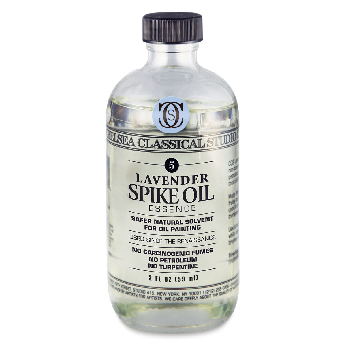 Use this natural solvent to thin oil painting mediums, resins, and varnishes. Chelsea Classical Studio Lavender Spike Oil Essence can also be used to blend colored pencils. It's not overly abrasive or streaky, and it evaporates at a similar rate as turpentine.