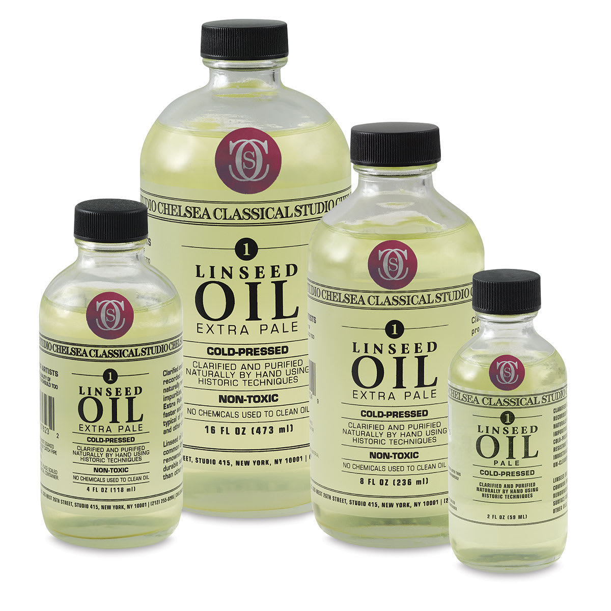 Washed and filtered to remove impurities, Chelsea Classical Studio Linseed Oil darkens less and yellows less than other linseed oils. Use Linseed Oil to brighten up your fine oil paintings. This medium greatly improves the acidity and decreases the drying time of oil colors.