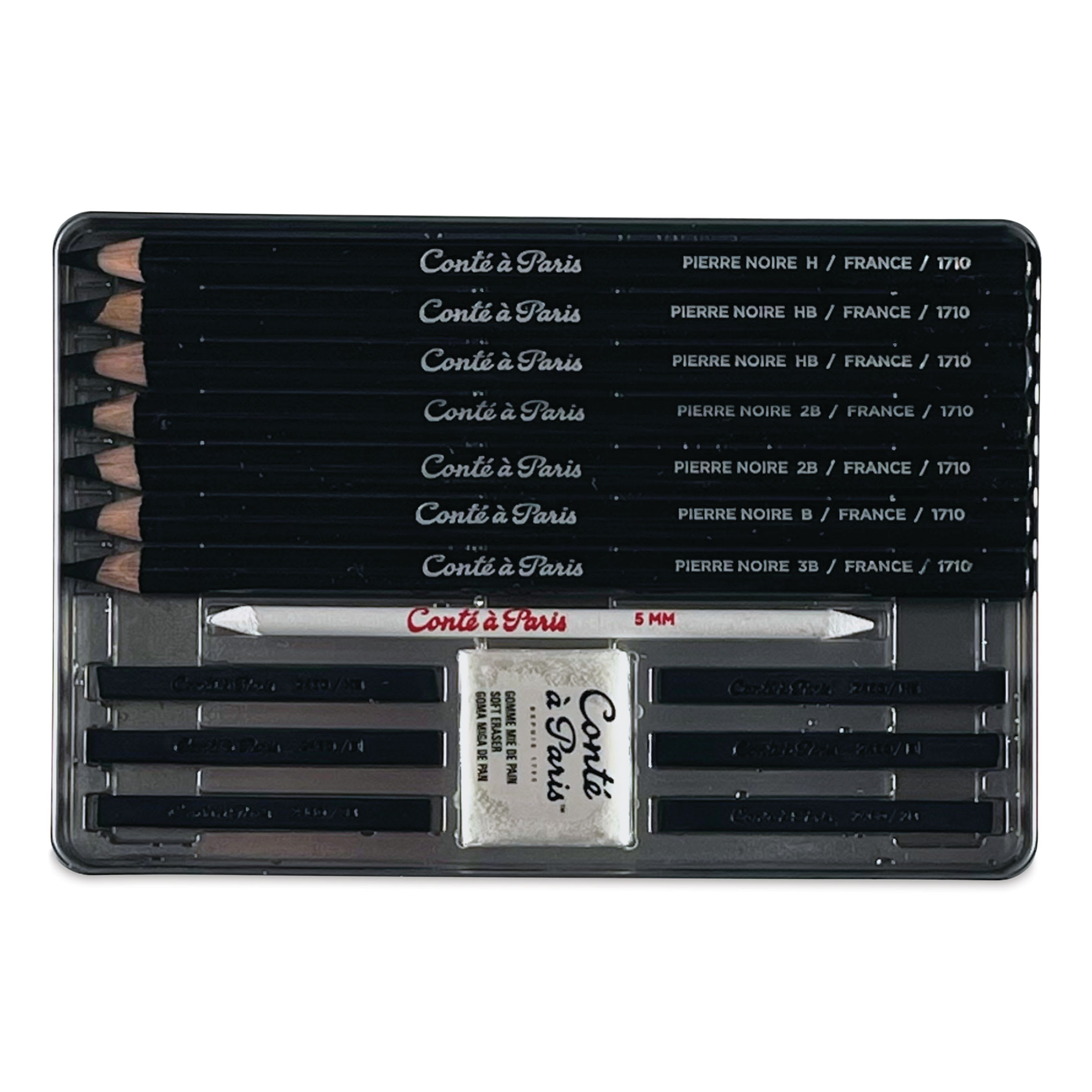 Conté à Paris Pierre Noire - Set of 15, contents inside of the metal box