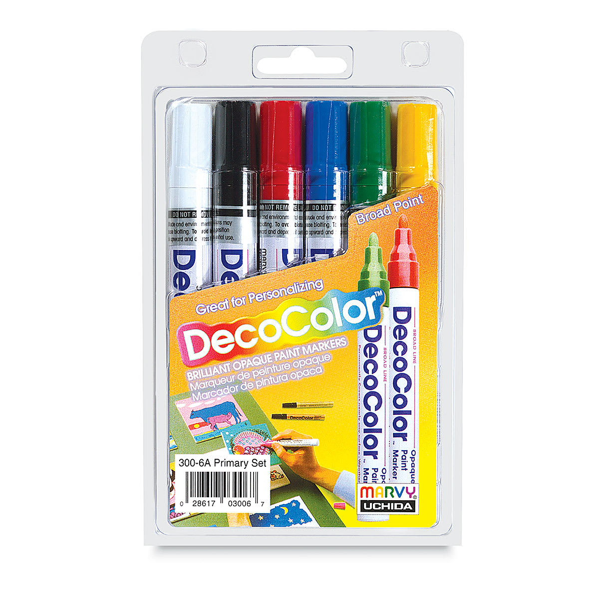 Decocolor Paint Markers - Front of blister package of Broad Tip Set of 6 Primary Colors