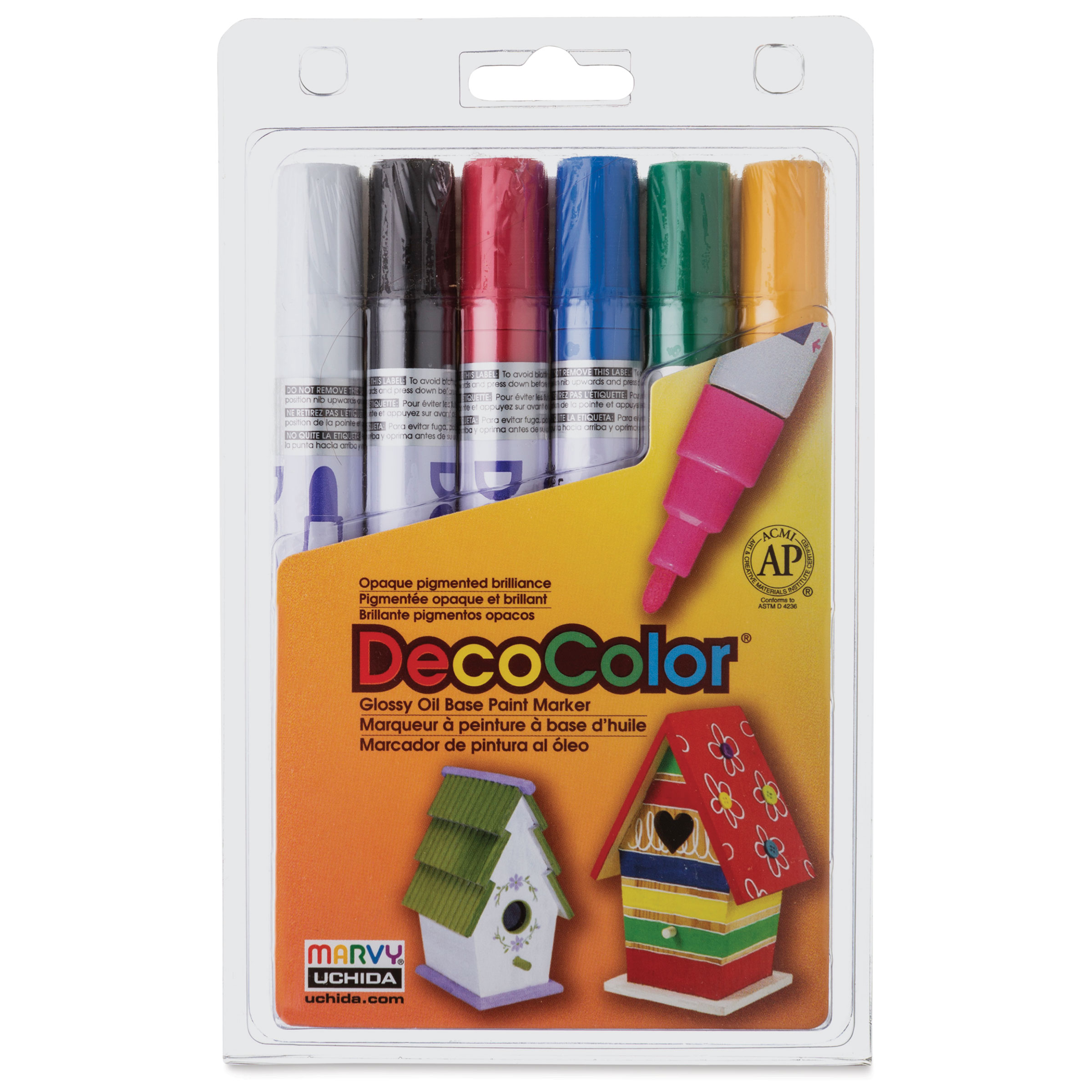 Decocolor Paint Markers - Set of 6, Primary Colors, Broad Tip