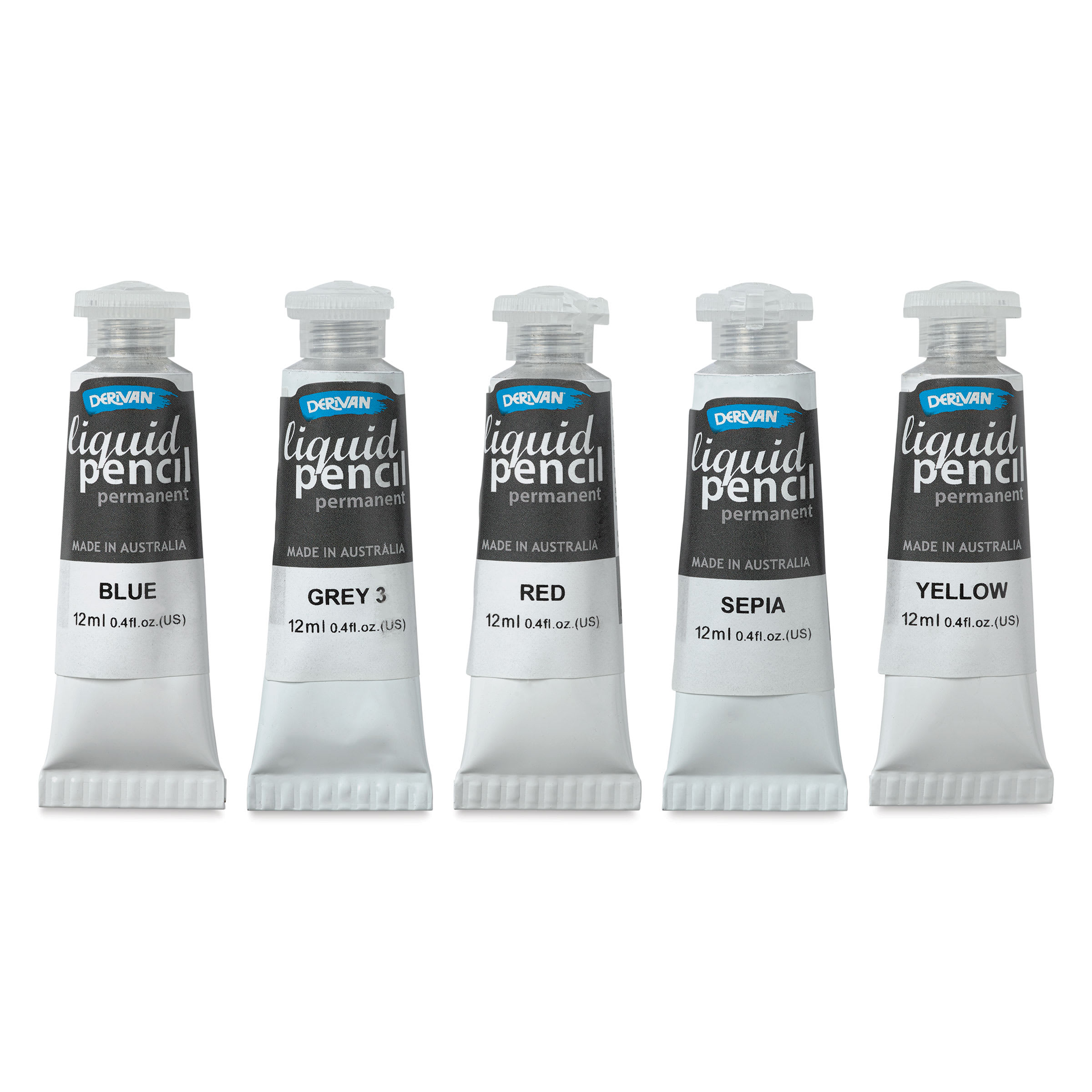 Derivan Permanent Liquid Pencil Tubes Set - Set of 5, 12 ml, out of packaging