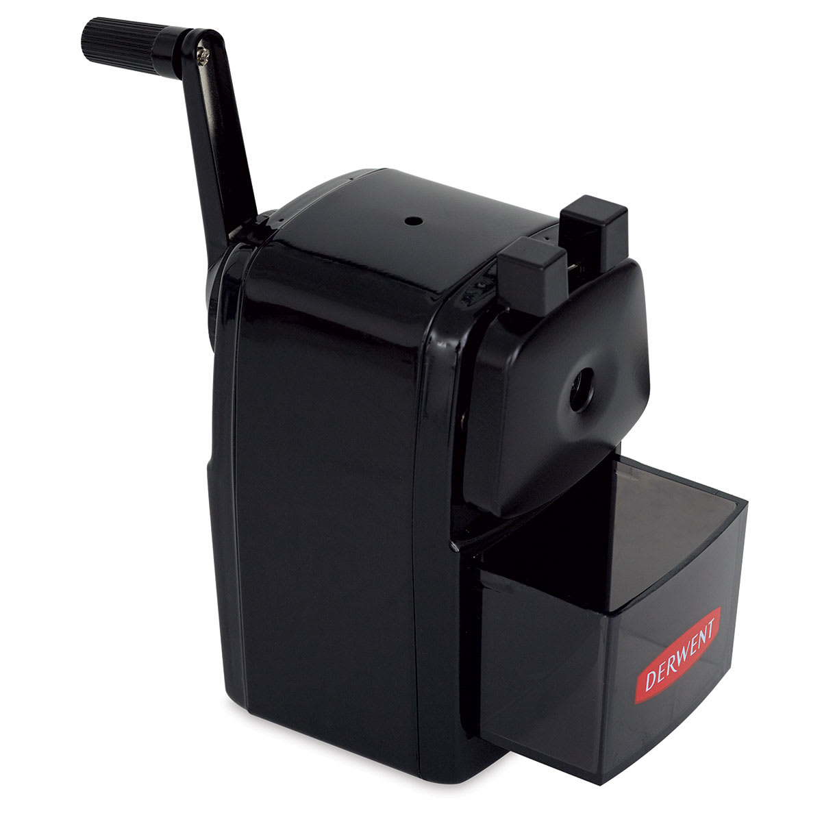 The Derwent SuperPoint Manual Pencil Sharpener produces an extra-long point, ideal for creating fine details. This durable sharpener features high-performance steel helical blades, an auto-stop safety feature, a metal casing, and a clamp for mounting the sharpener securely to work tables, desks, a...
