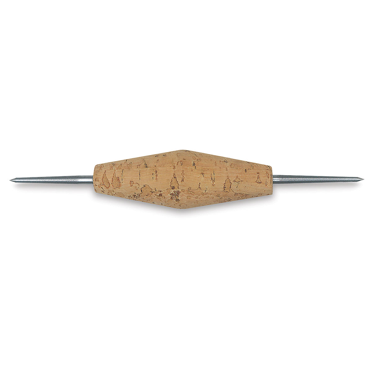 The E C Lyons Double Point Scribe is a cork-handled etching needle that produces fine lines. The comfortable-to-hold handle is perfect for beginning artists or those who have trouble grasping a thin etching needle. The scribe has traditional, double-edged steel tips and measures 6 inches long.