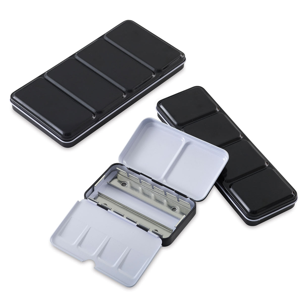 Create a custom palette inside your Empty Watercolor Palette Tins. The sturdy, reusable tins are black on the outside and white on the inside.