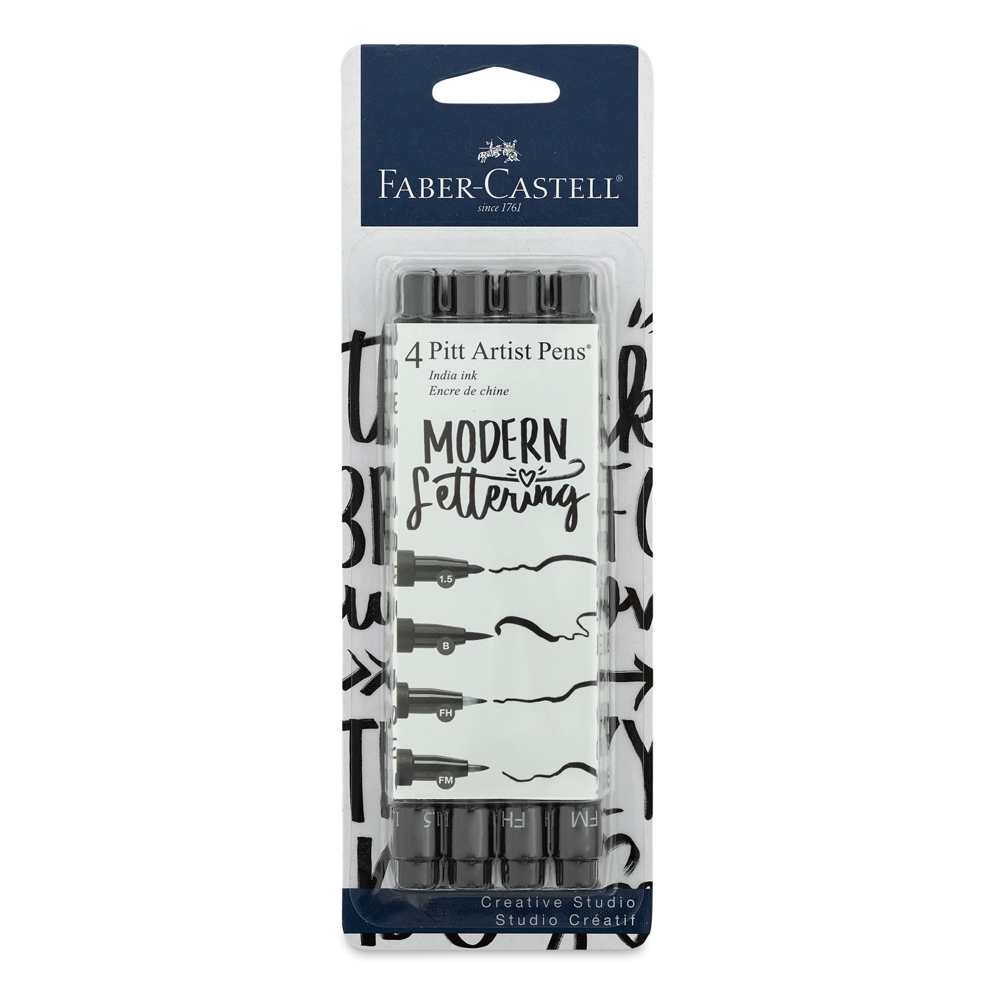 Faber-Castell Pitt Artist Pens - Modern Lettering Set, Black, Set of 4, Assorted Nibs front of packaging