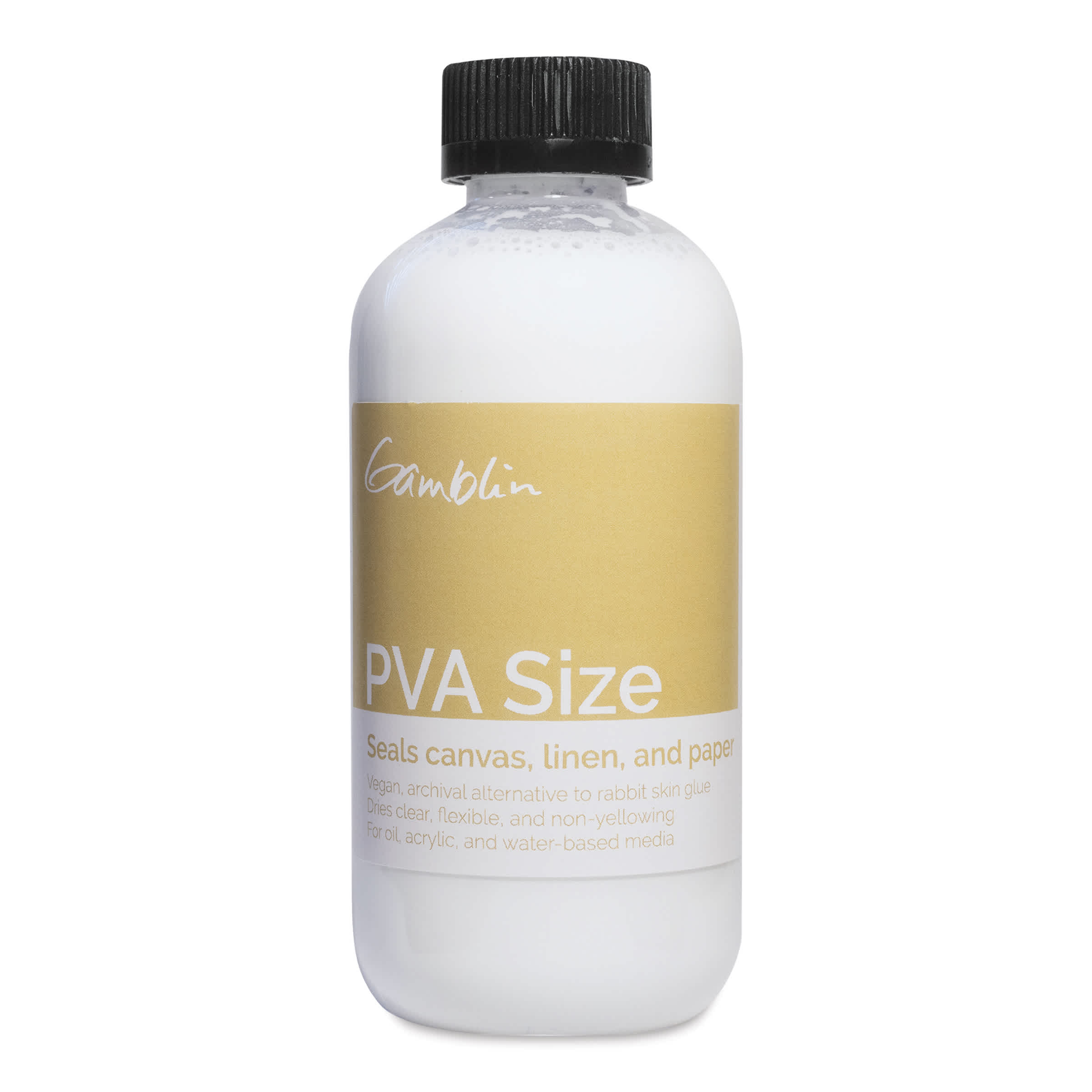 Diluted with distilled water, PVA size is a contemporary size for fabric support. Conservation scientists recommend painters use neutral pH PVA size on linen and canvas instead of rabbit skin glue. PVA provides a good size layer that seals the fabric but does not re-absorb atmospheric moisture, swel...