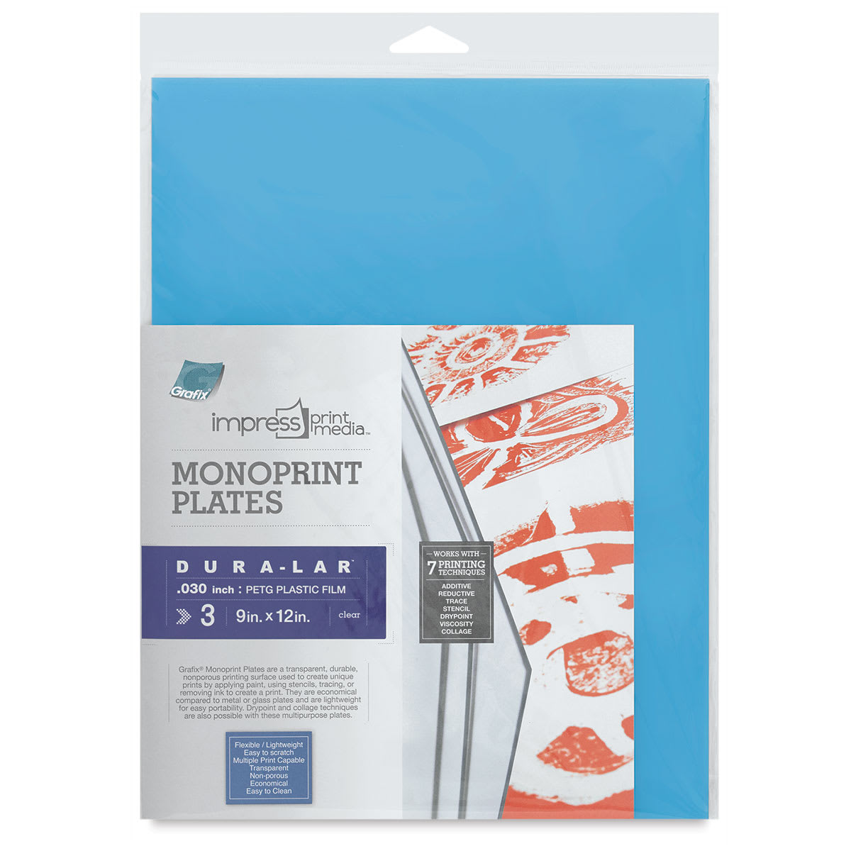 Grafix Impress Monoprint Plates can be used to create unique prints by applying paint, using stencils, tracing, or removing ink. Drypoint and collage techniques are also possible with these multipurpose plates, which are made from flexible Dura-Lar 0.030 PETG plastic film. Impress Monoprint Plates ...