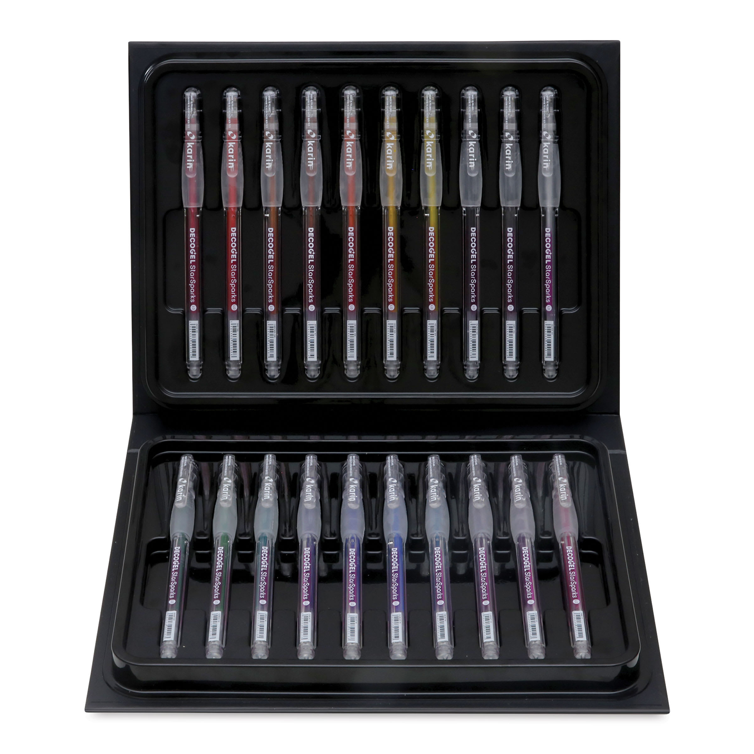 Karin DecoGel StarSparks Pens - Set of 20, pens shown inside the packaging