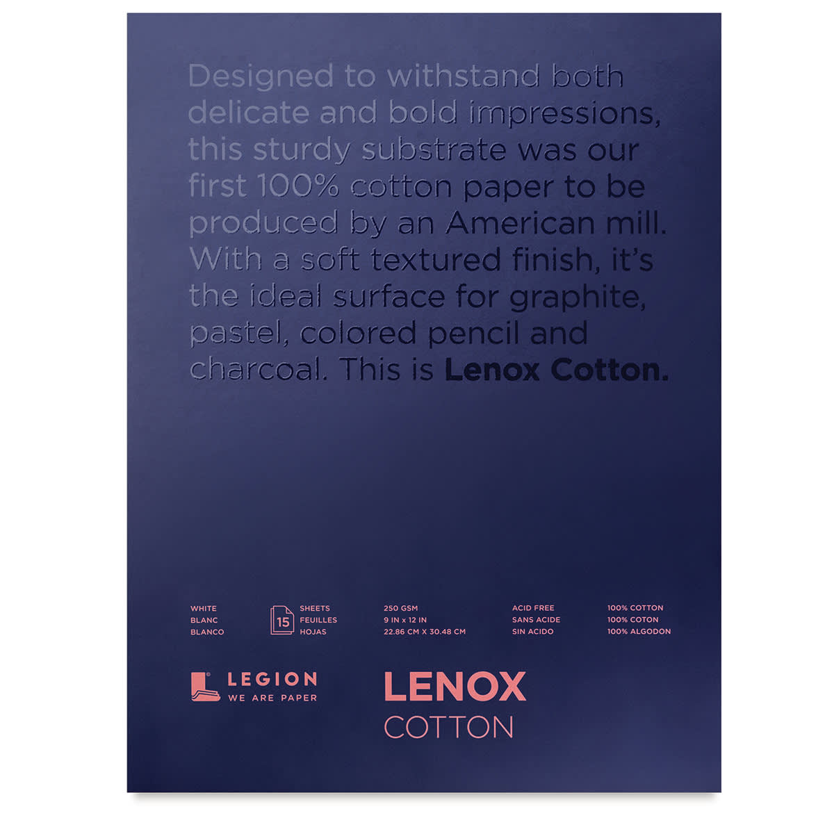 Legion Lenox 100 paper is acid-free and pH-neutral. Use it with colored pencils, graphite, pastels, and charcoal. Its smooth white surface also works well for offset lithography, silkscreening, etching, and embossing. Available in 15-sheet pads, this acid-free, pH-neutral, 50 lb (135 gsm) paper is...