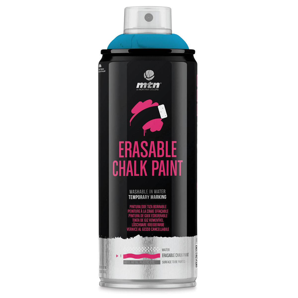 MTN Pro Erasable Chalk Spray Paint is a great temporary alternative to spray paint. Use this waterbased chalk paint on nonporous surfaces to add decorations or markings that remove easily with a damp cloth or pressurized water, but are resistant to everyday wear. It comes in an aerosol can and dispe...
