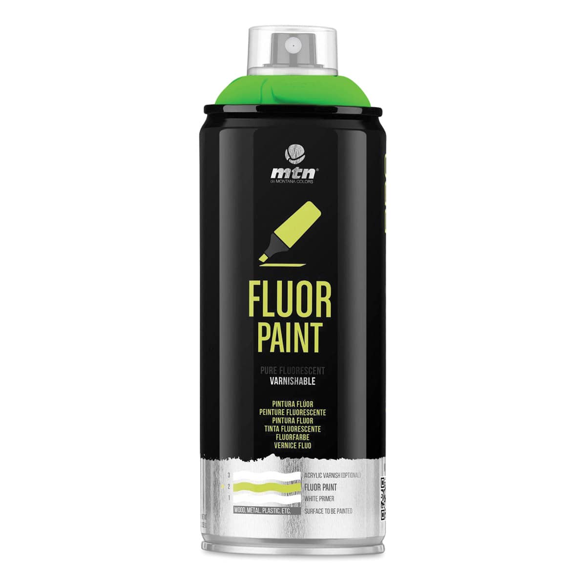 When exposed to black light MTN Pro Fluor Spray Paint becomes brighter and more visible. Suitable for artists of all skill levels, this fluorescent paint has high opacity, provides excellent coverage, and dries quickly. It can also be removed easily with acetone.