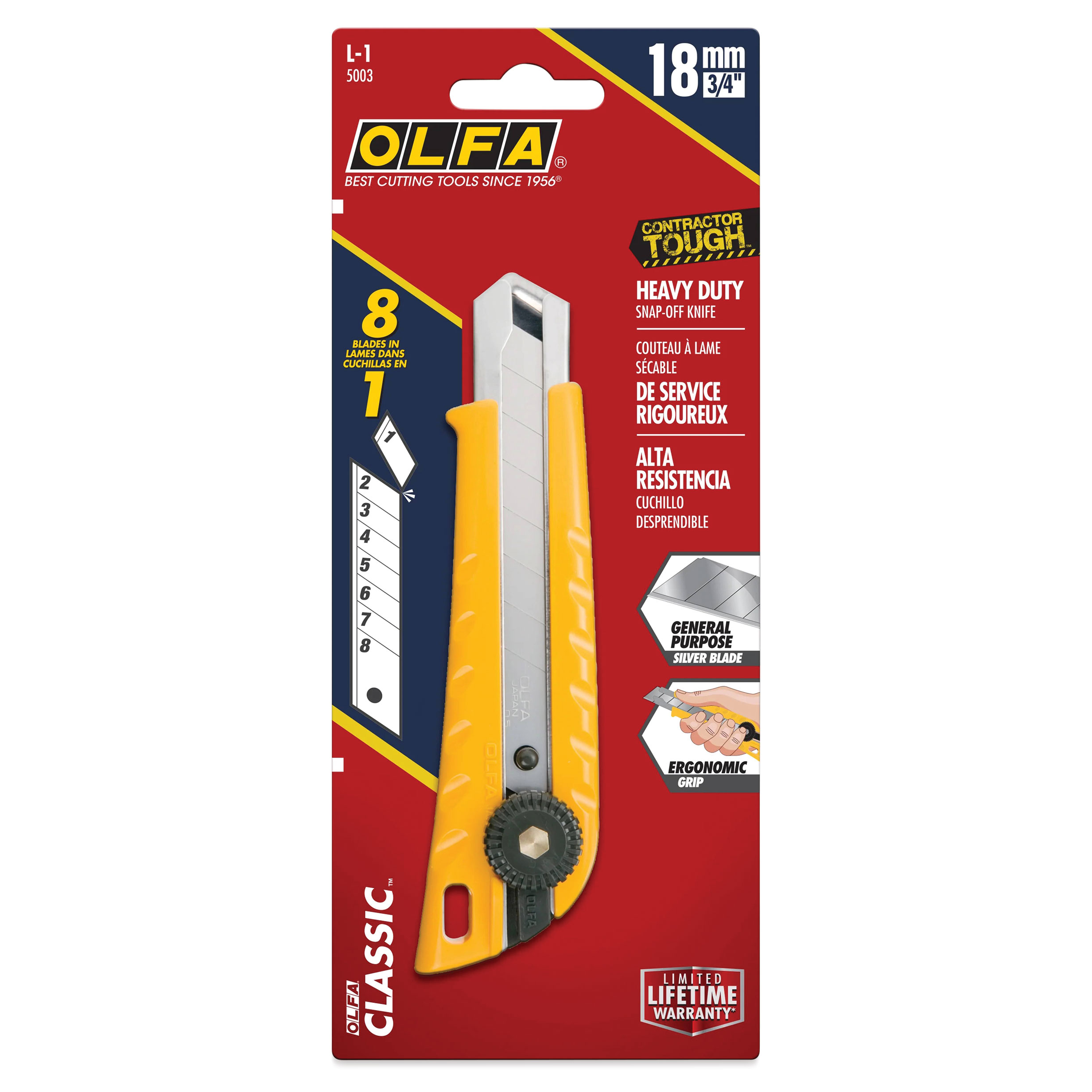 Olfa Snap-Off Blade Utility Knife offers amazing sharpness and superior edge retention! A refill blade is included. Each strip includes 8 blades and the refill pack is a package of five strips for a total of 40 blades.
