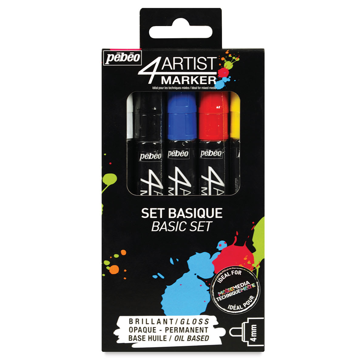 Pebeo 4Artist Markers - Front of Pkg of 5, 4 mm Basic Color Markers