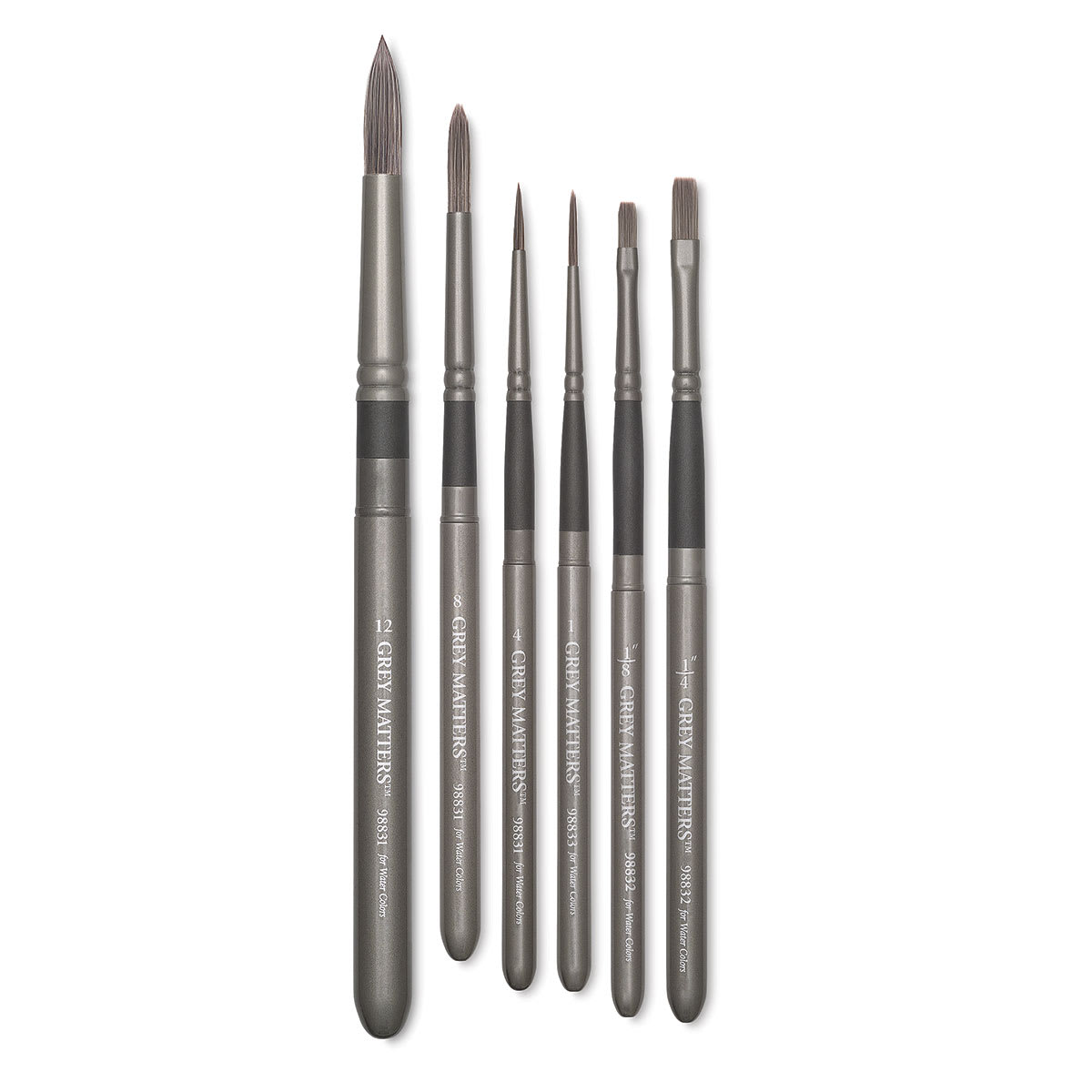Richeson Grey Matters Brushes are made from non-reflective hair, ferrules, and handles, so nothing comes between the artist's brush and the canvas—perfect for plein air or in the studio. Pocket brushes come in a variety of sizes and shapes. For use with watercolors. Their open length is approximate...