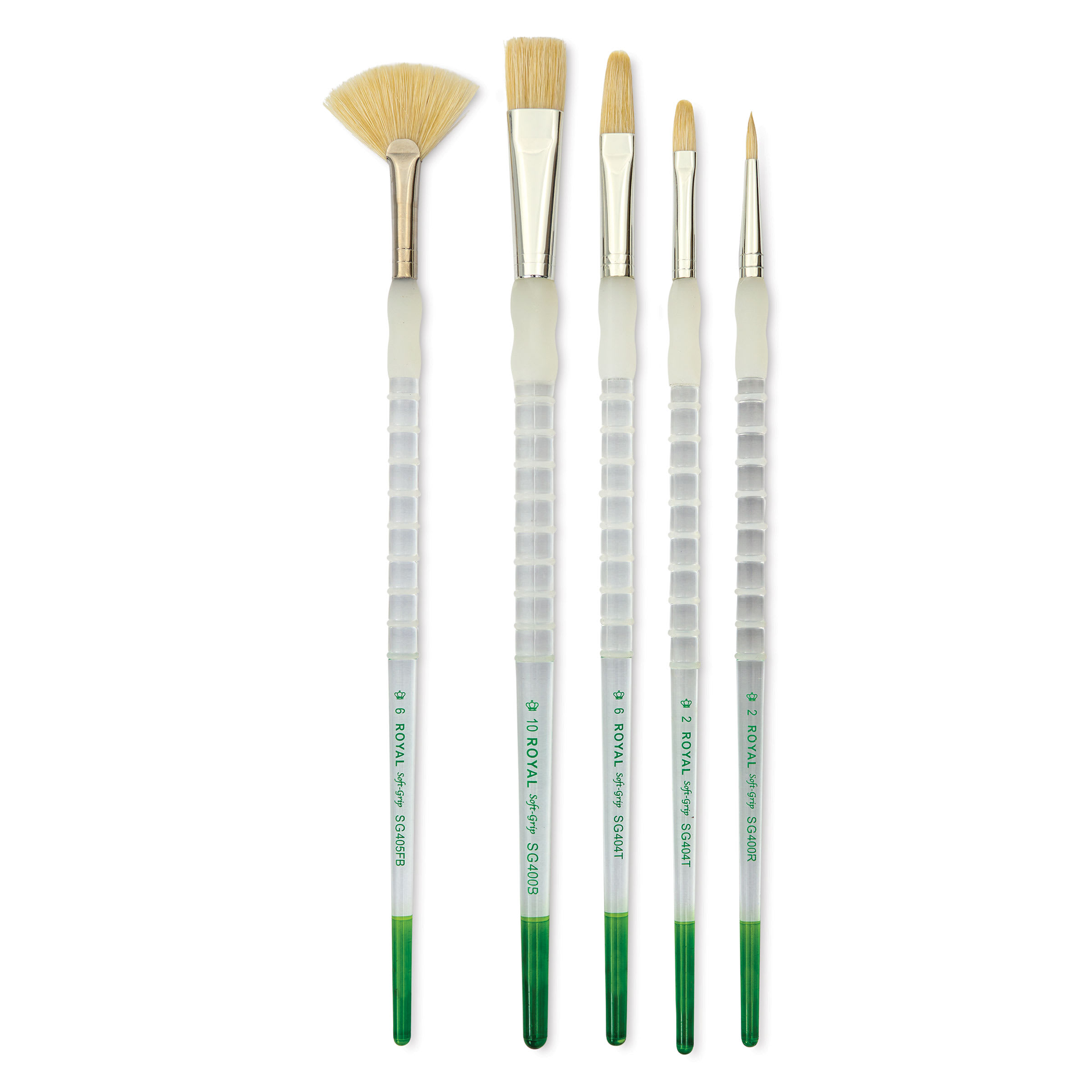 Royal & Langnickel Soft Grip White Hog Bristle Value Brushes - SG505, Set of 5
