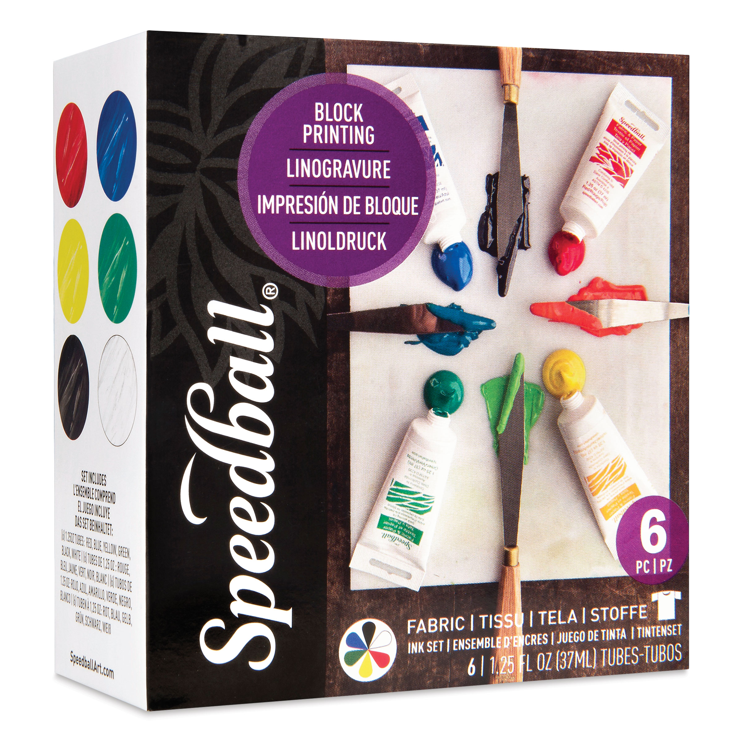 Speedball Ultimate Fabric and Paper Block Printing Kit - Set of 6, angled view