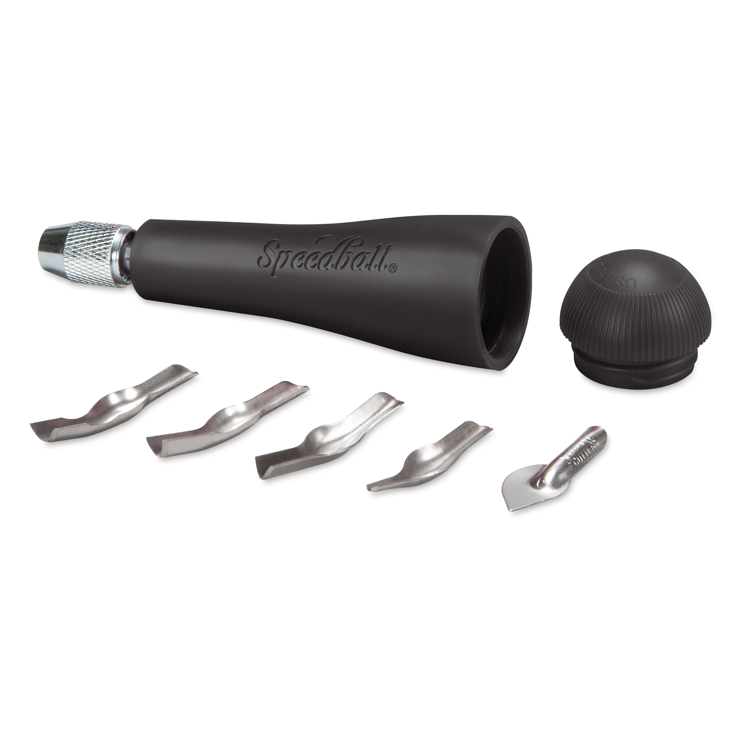 Speedball Linoleum Handle - Black Lino Handle No. 1, Set of 5 Cutters