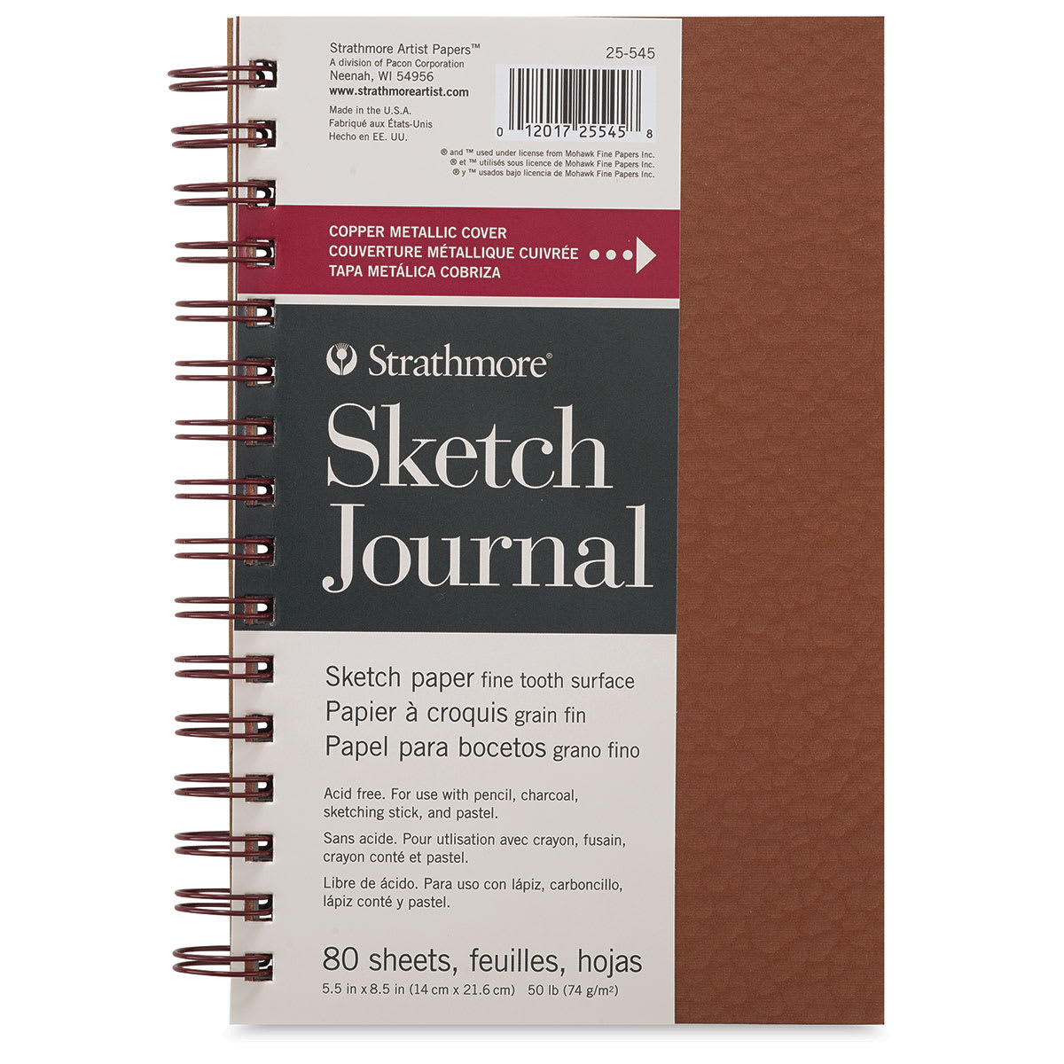 These fashion-inspired journals feature elegant covers that simulate hammered copper and brushed silver. Each Strathmore Metallic Journal holds 80 sheets of lightweight 50 lb (70 gsm) paper, ideal for sketching and practicing dry media techniques. Their heavy-duty wire bindings and durable 18&n...