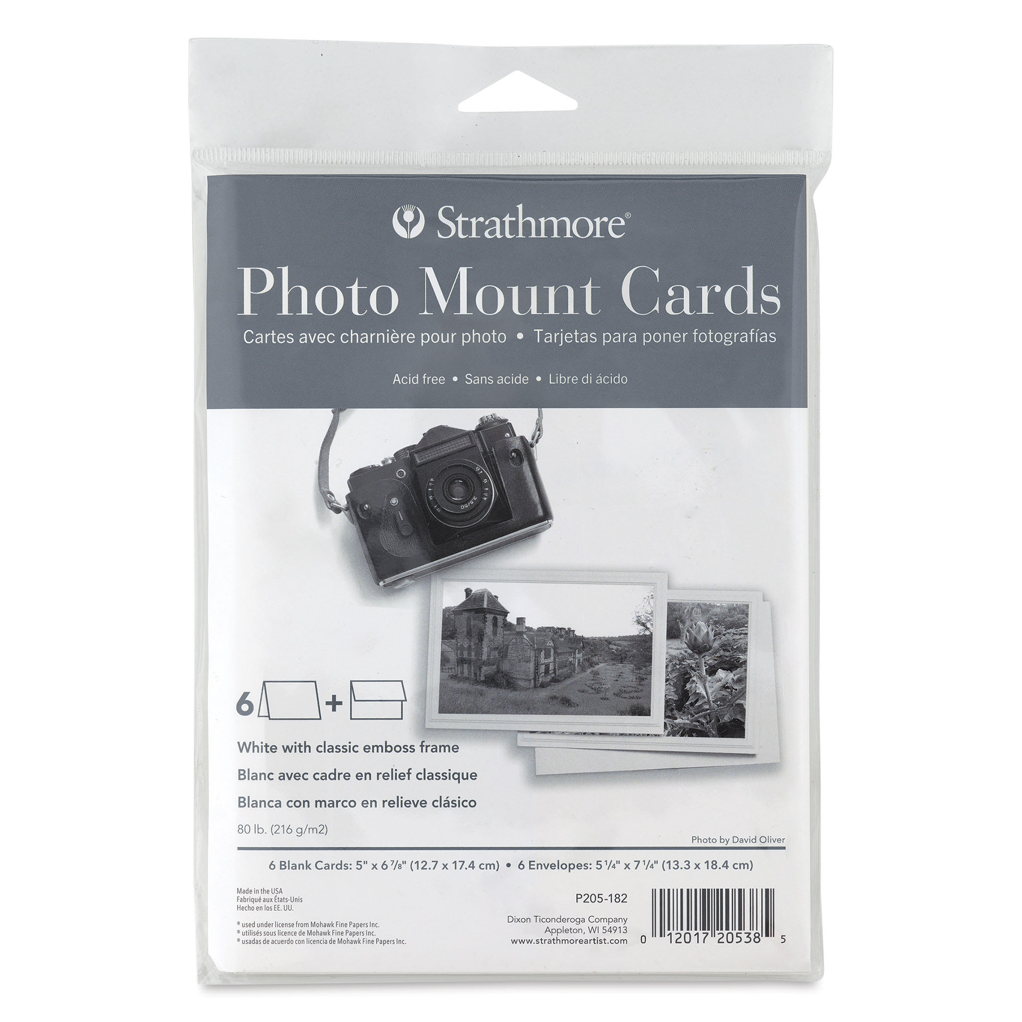 Create personalized greetings in seconds with Strathmore Photo Mount Cards. Simply mount photos, artwork, or pictures to the front of these beautifully embossed, acid-free cards. Included in each package are double-stick stabs for adhering up to a 4" x 6" (102 mm x 152 mm) picture.
