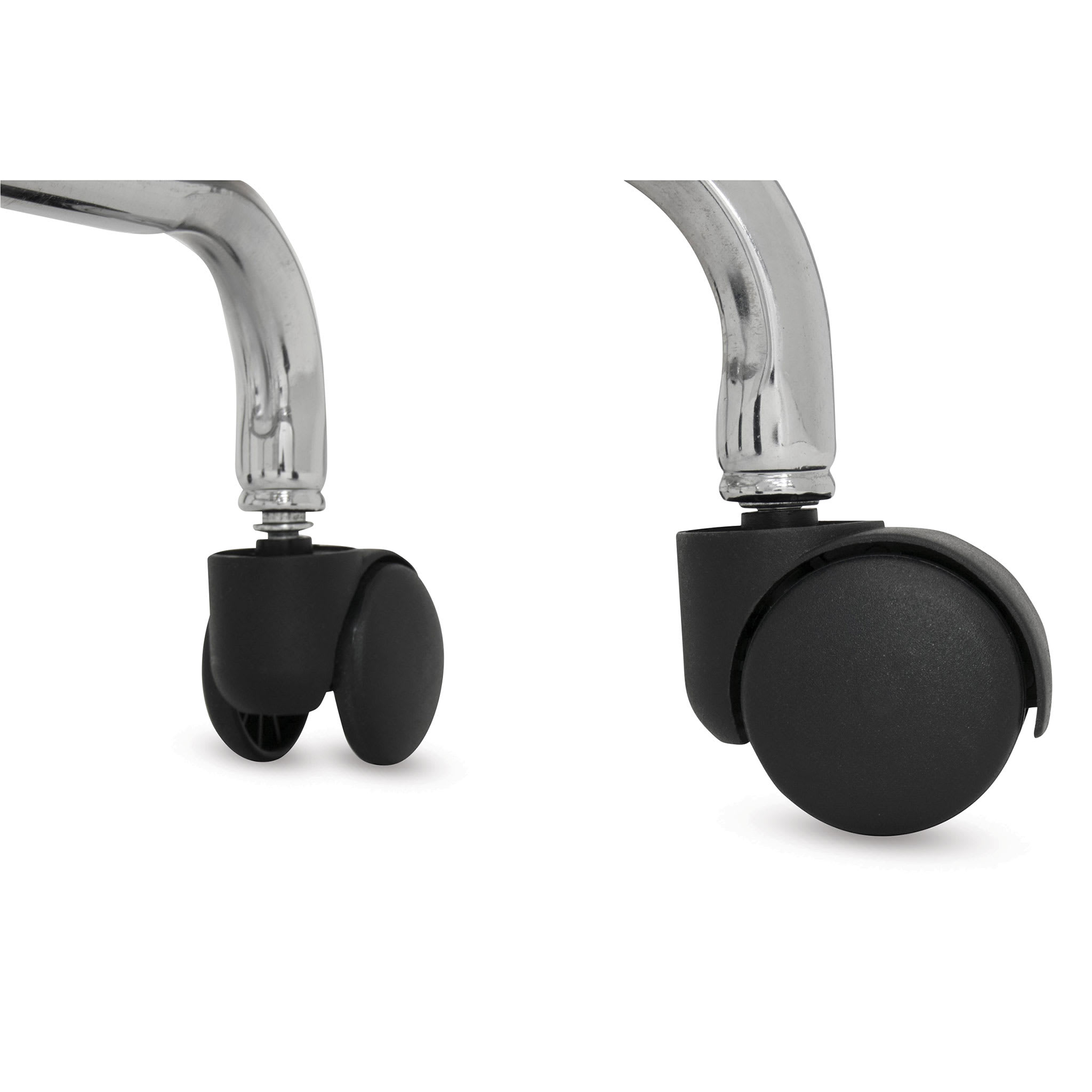The Studio Designs Studio Stool has a chrome five-star base and comfortable seat with pneumatic height adjustment. Adjust the height between 18-1/2" and 23-1/2". The five-star base has a chrome footring and large covered casters for both stability and mobility.