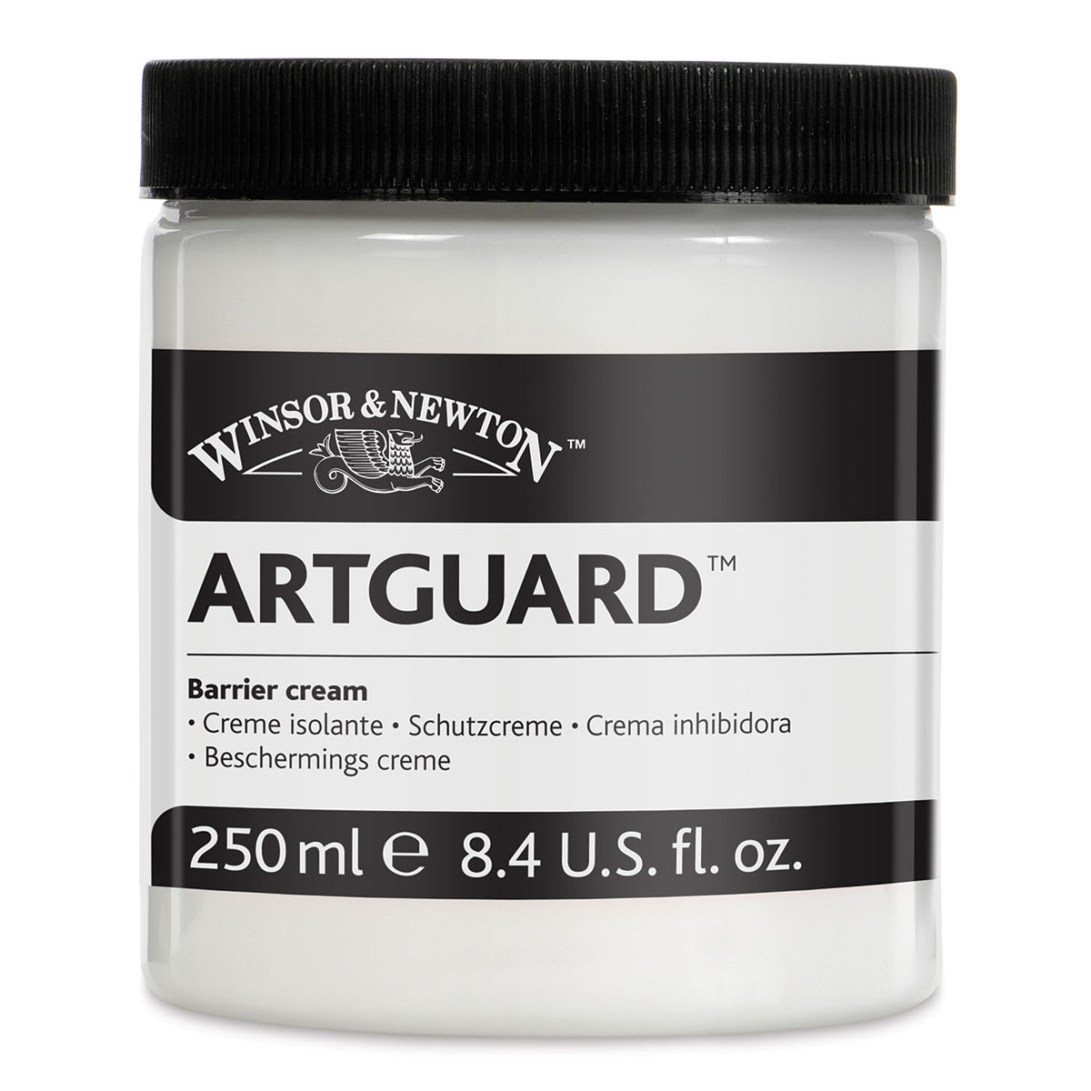 A light, non-greasy cream which when applied to hands before working, forms a protective barrier against all types of artist's materials Remove esily with soap and water Contains moisturizers to condition the skin and hands. 250 ml Jar.